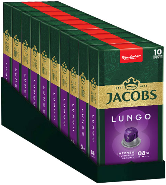 Сет 10 пачок по 10 капсул! Кава в капсулах Nespresso Jacobs Lungo Intenso 8