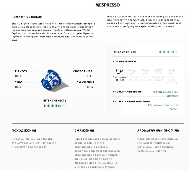 Кава в капсулах Nespresso Lisbon Bica (10 шт.) опис: